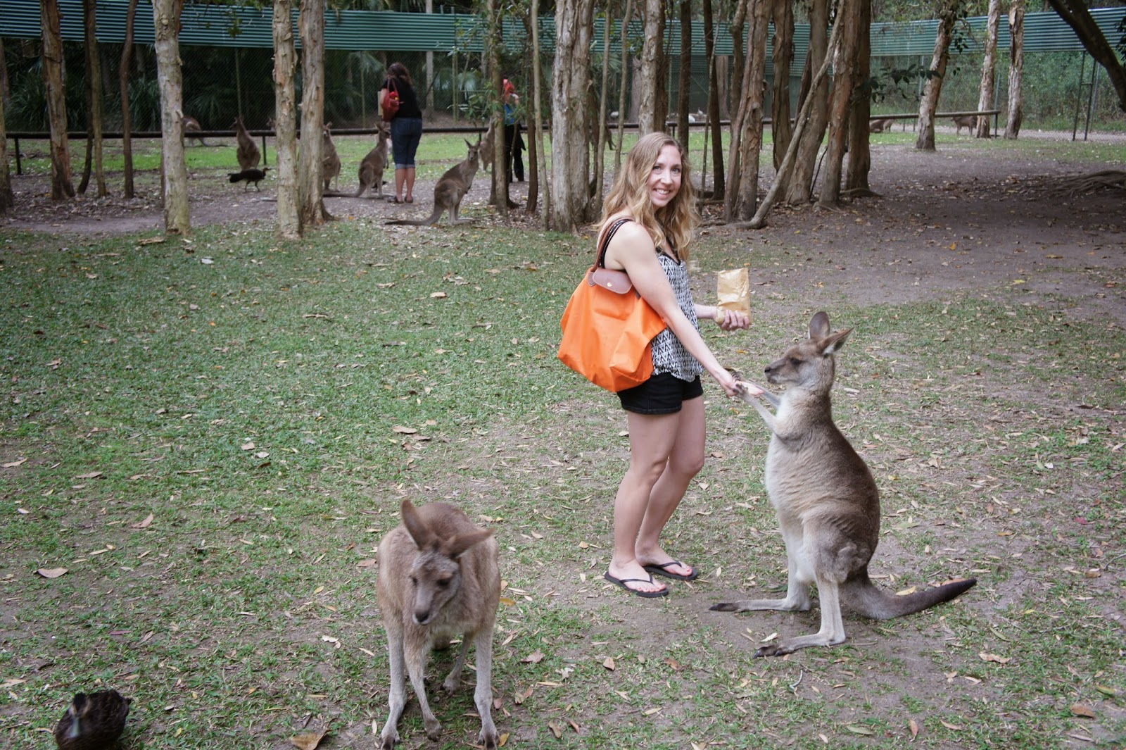 Another day we visited the Australian Zoo, Home of the Crocodile Hunter. We had so much fun exploring the zoo and meeting all of the uniquely Australian animals including the koalas, kangaroos, Tasmanian devil, and of course crocodiles! There was a really cool kangaroo area that was basically a park that the kangaroos could hop all around. We bought some 'roo food and fed and pet the cute little kangaroos. They ate out of our hands and if you raised your hand up, the kangaroo would hold onto your hand with both front feet to get to the food. I loved the koalas! Everyone could pet one of the koalas in the exhibit. One of the zoo keepers was just walking around holding a koala like a baby! It was so cute. So when we saw that you could pay to hold a koala and get your picture taken, I couldn't resist. Come on, once in a lifetime opportunity right? So I actually got to hold a koala and I have to say, it pretty much made my trip!